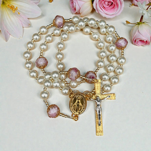 Angelic Gold Pearl Rosary 🎀🤍✨ -